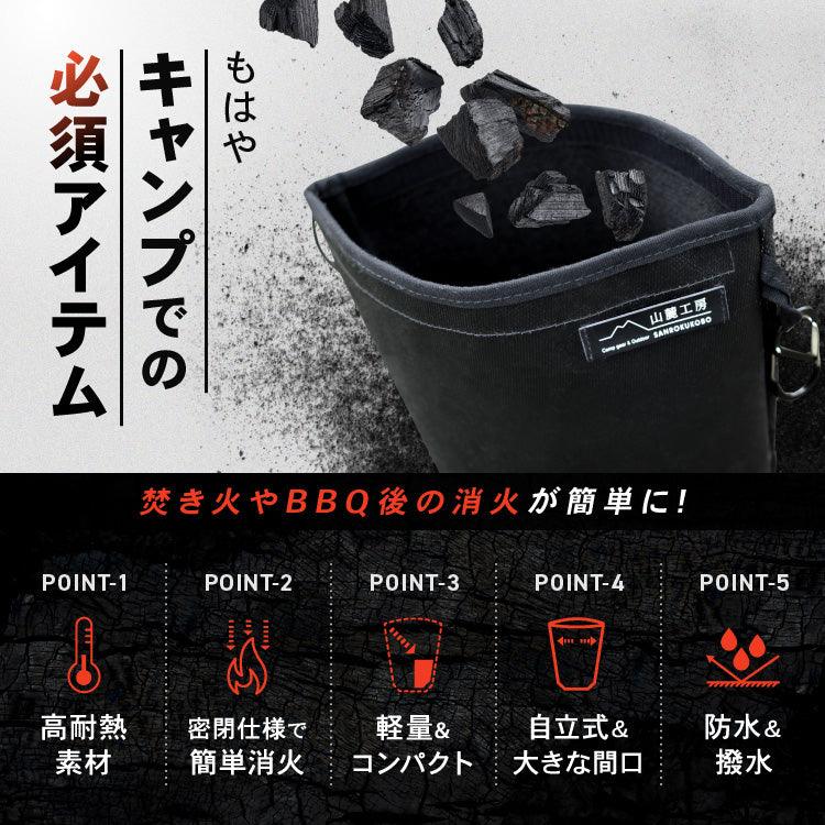 袋を開ける→炭を入れる→閉じるだけ。それだけで炭や薪を鎮火してスムーズに撤収が出来るように、なるべく使いやすさにこだわっています。